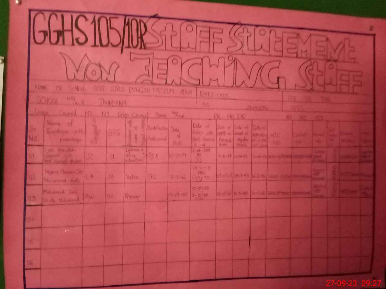 | Name: Za**** Ko**** Designation: (School Headmaster's/Headmistress's) Hms Phone/Cell Number: 03**** |