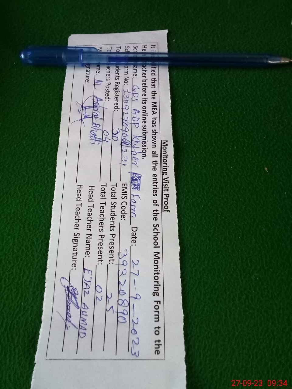 | EMIS Code: 39320890 | Name of School: GPS ADP KHYBER FARM | |||