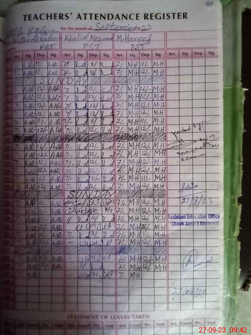 | Name: Ak**** Al**** Designation: (School Headmaster's/Headmistress's) PST Phone/Cell Number: 03**** |