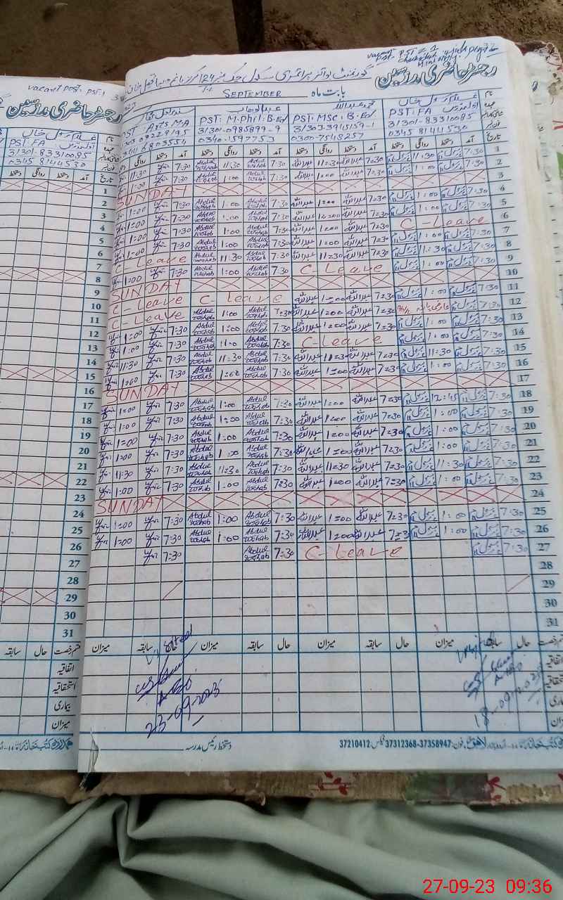 | Name: GH**** RA**** KH**** Designation: (School Headmaster's/Headmistress's) PST Phone/Cell Number: 03**** |