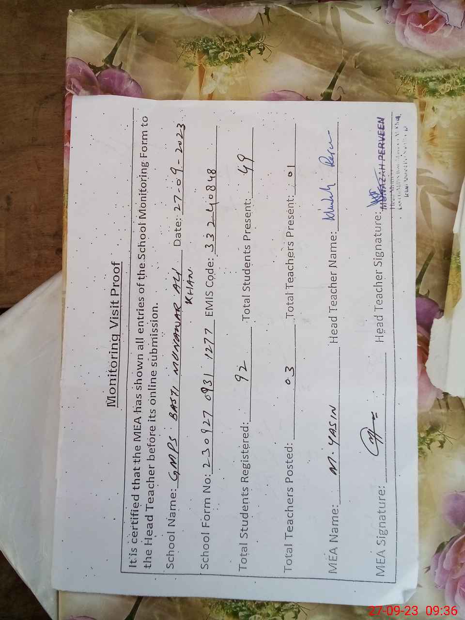 | EMIS Code: 33240848 | Name of School: GMPS BASTI MUNAWAR ALI KHAN | |||