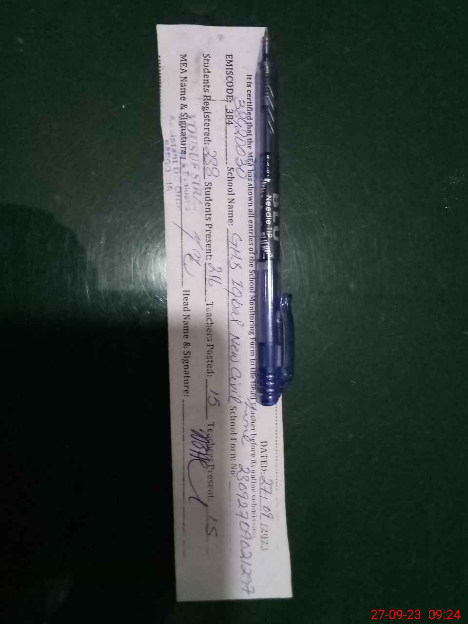 | Monitoring Date: 27-09-2023 | Start Time: 27-09-2023 08:57 AM | End Time: 27-09-2023 09:28 AM | Name of MEA: YO**** SI**** | |