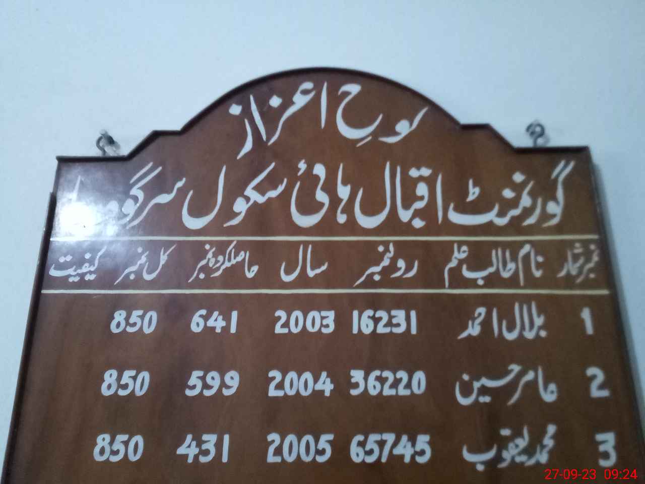 | EMIS Code: 38420030 | Name of School: GHS IQBAL NEW CIVIL LINE SARGODHA | |||