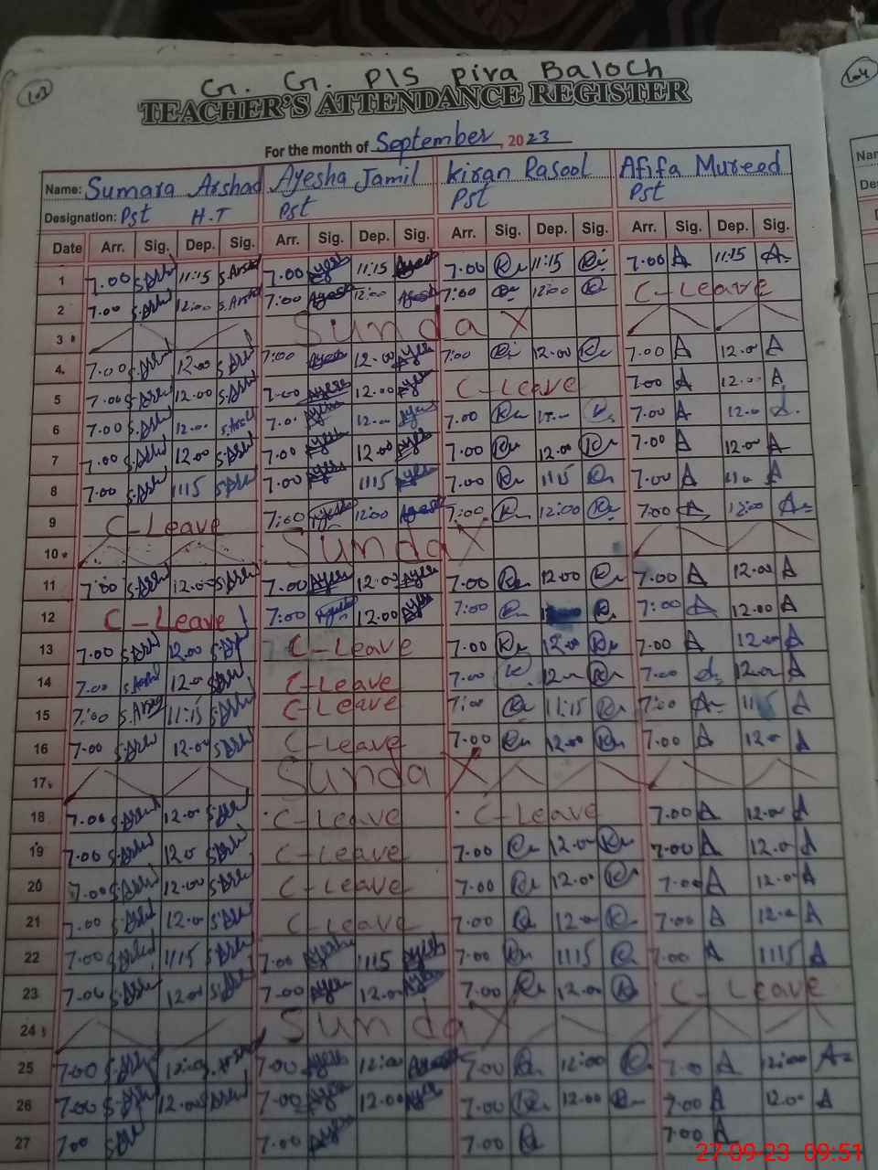 | Name: SU**** AR**** Designation: (School Headmaster's/Headmistress's) PST Phone/Cell Number: 03**** |