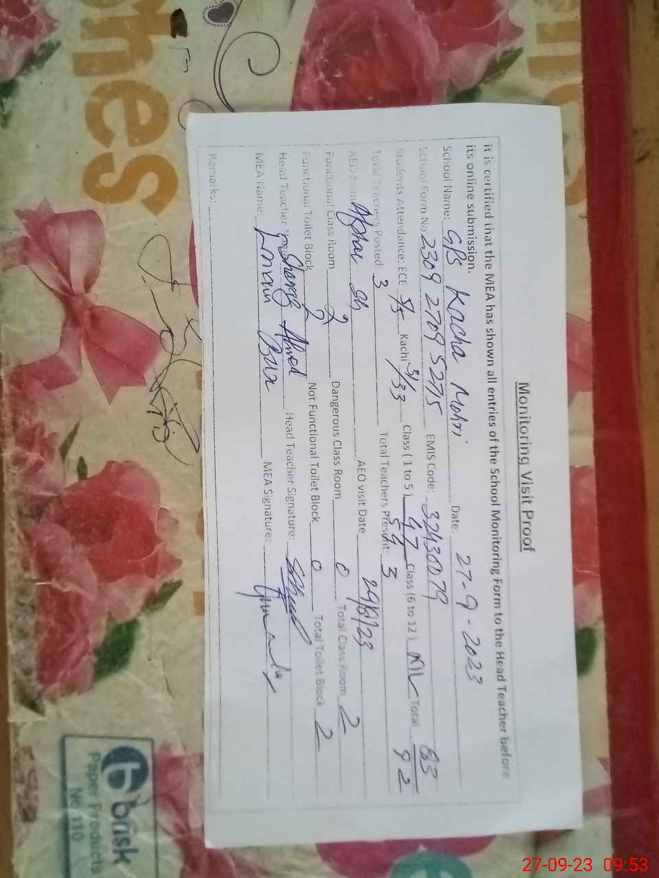 | EMIS Code: 32430079 | Name of School: GPS KACHA MOHRI | |||