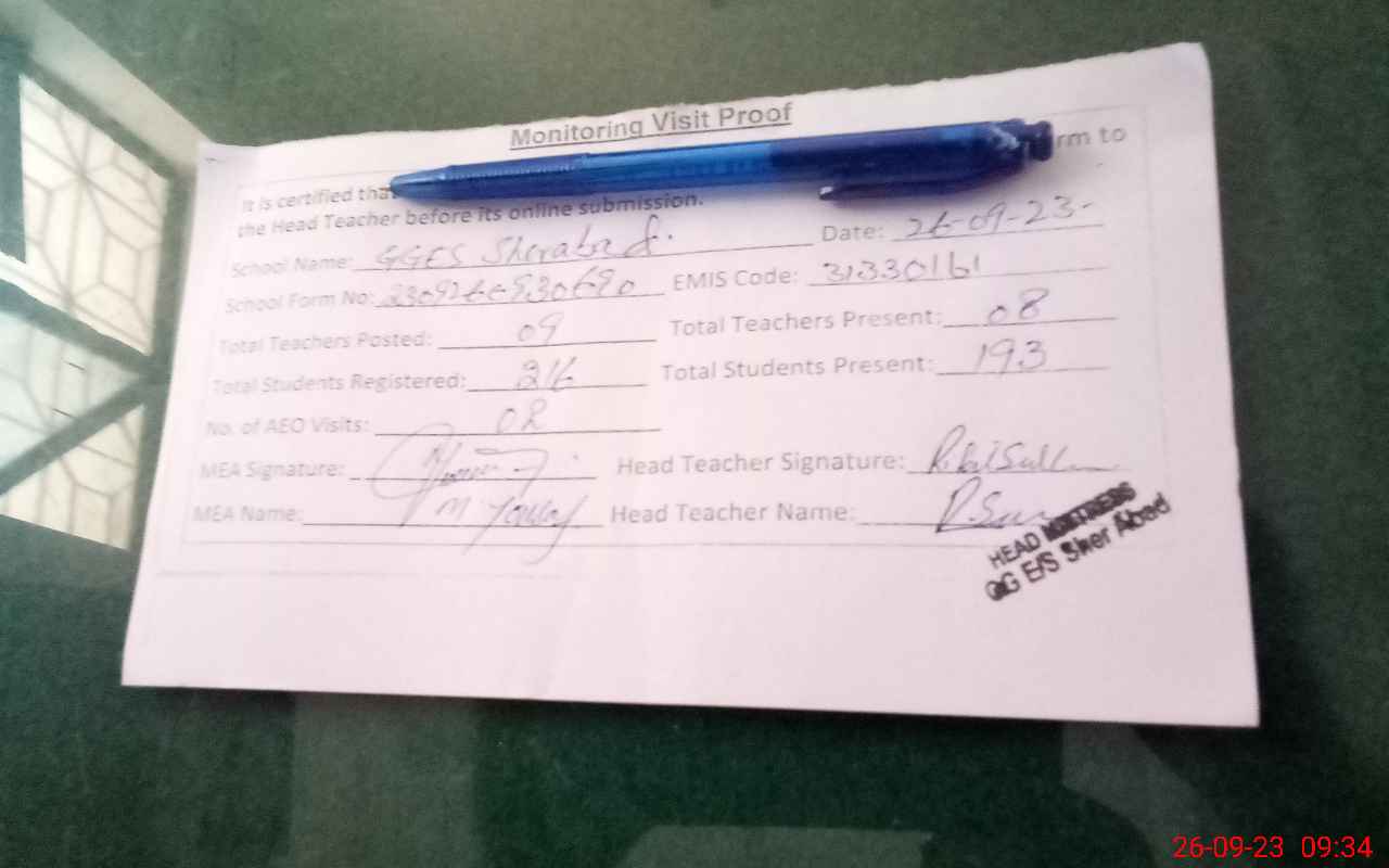 | EMIS Code: 31330161 | Name of School: GGES SHER ABAD | |||