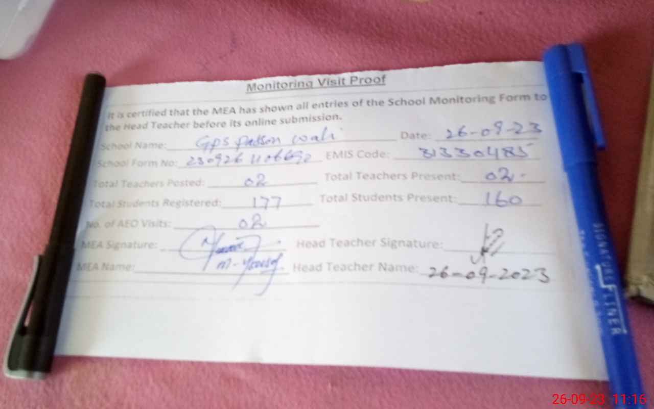 | Attendance Register | Head Teacher | MEA with School | Visit Proof |