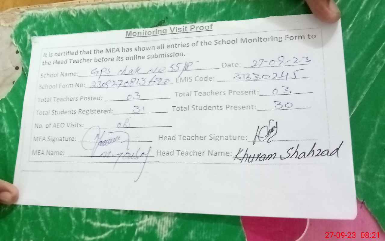 | EMIS Code: 31330245 | Name of School: GPS CHAK 55/P | |||
