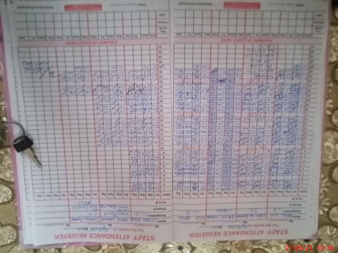 | CNIC | Full Name | Designation | R/C | Absence During Last Calender Month |