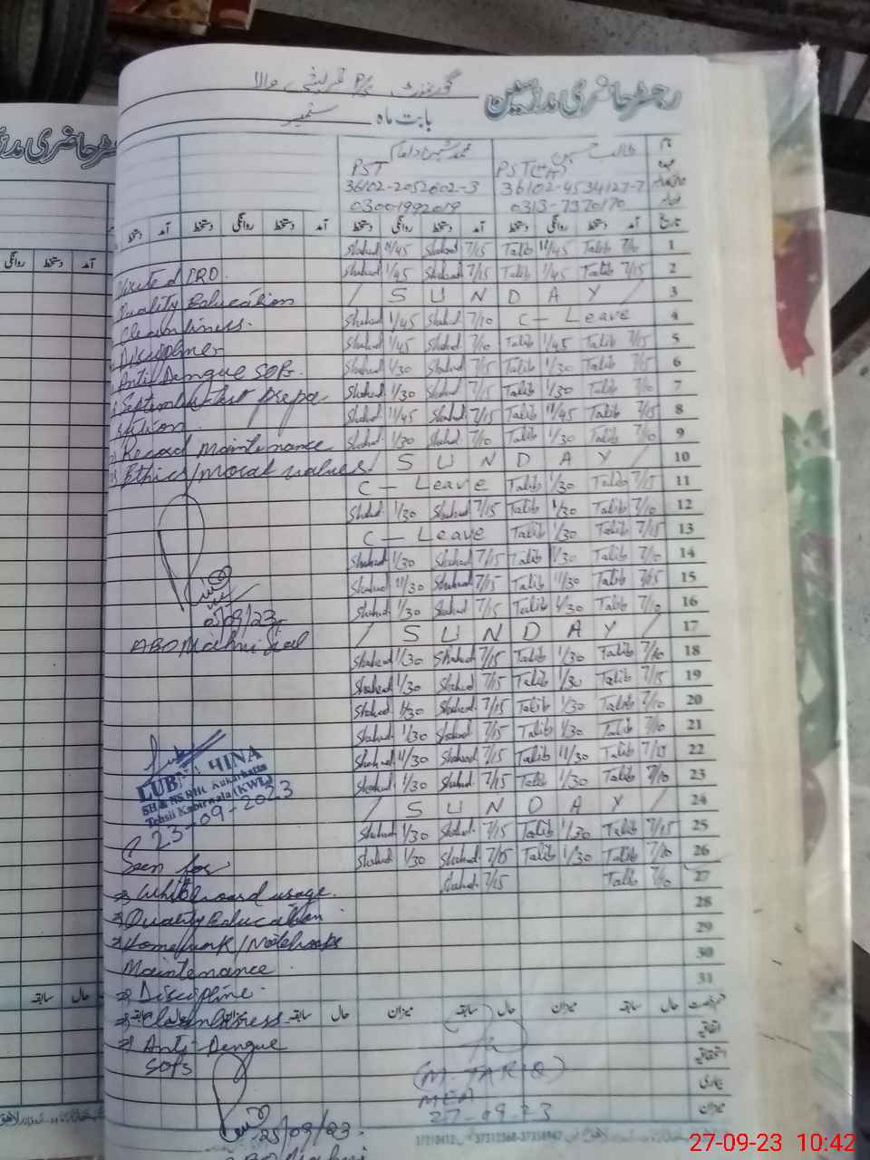 | Name: Ta**** Hu**** Designation: (School Headmaster's/Headmistress's) PST Phone/Cell Number: 03**** |