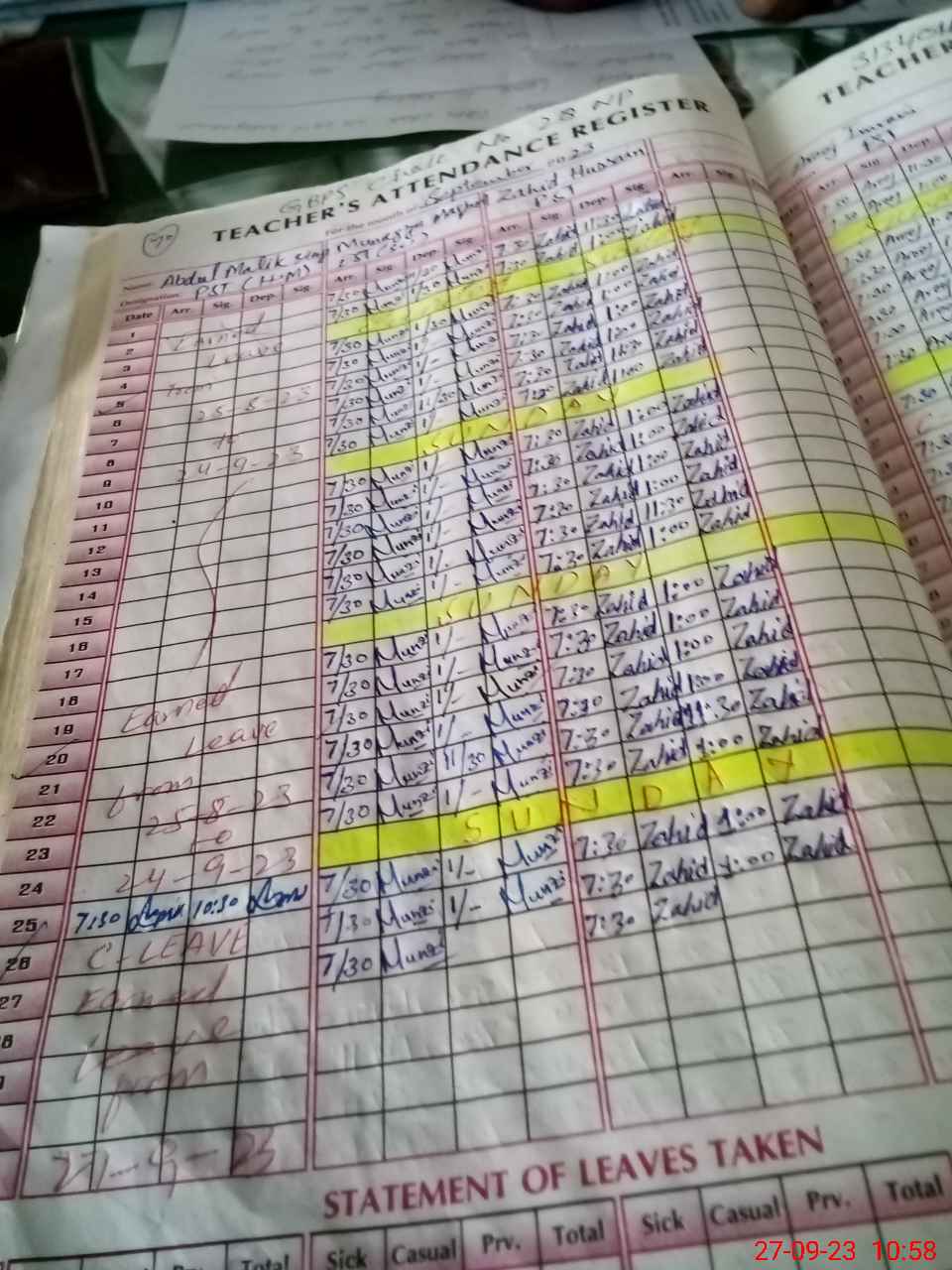 | Name: Ze**** Qa**** Designation: (School Headmaster's/Headmistress's) PST Phone/Cell Number: 03**** |