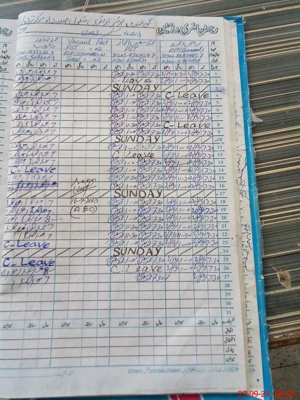 | Name: RI**** AH**** Designation: (School Headmaster's/Headmistress's) EST (GEN) Phone/Cell Number: 03**** |
