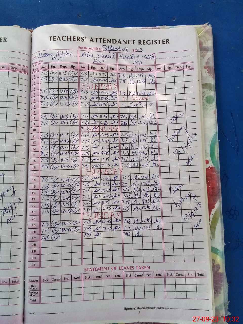 | Name: NA**** AK**** Designation: (School Headmaster's/Headmistress's) PST Phone/Cell Number: 03**** |