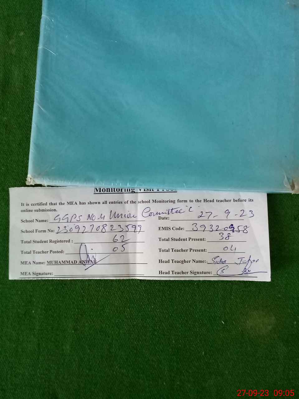 | Attendance Register | Head Teacher | MEA with School | Visit Proof |