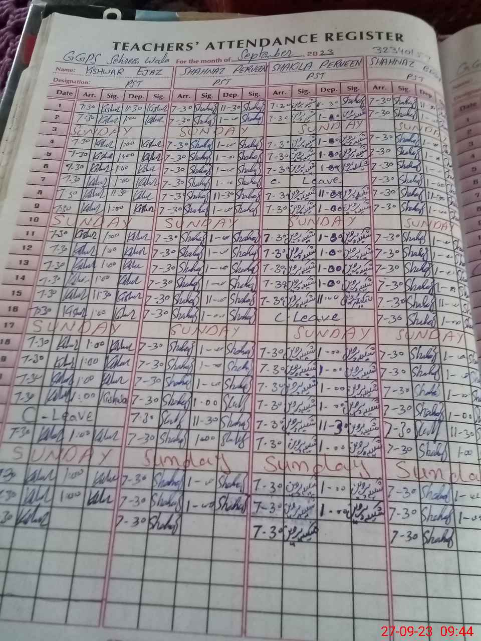 | CNIC | Full Name | Designation | R/C | Absence During Last Calender Month |