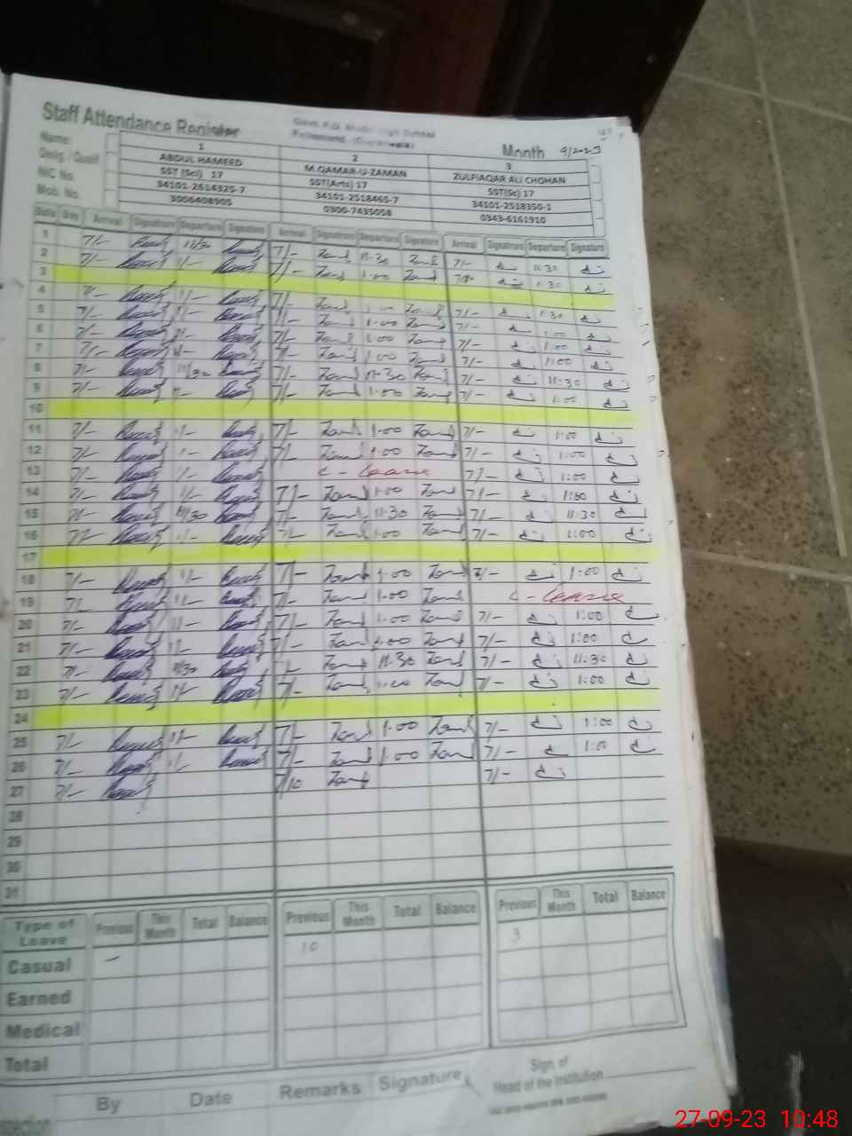 | Name: AB**** HA**** Designation: (School Headmaster's/Headmistress's) S.S.T. Sci Phone/Cell Number: 03**** |