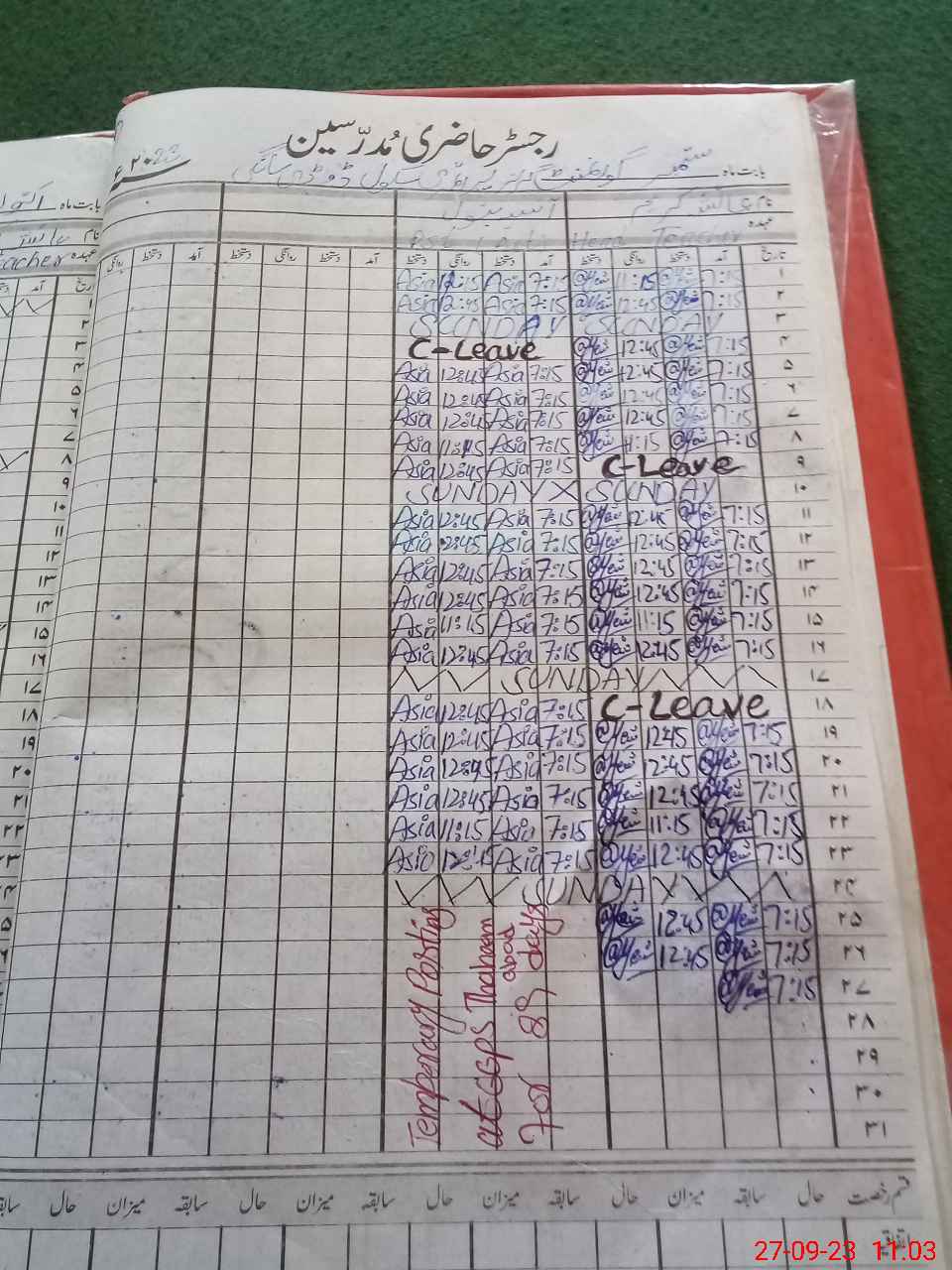 | 31**** | As**** Ba**** | 1 | 1 | 0 | 0 | 0 | 0 | 0 | 0 | 0 | 0 | 0 | Absent (Un-Authorized) |
