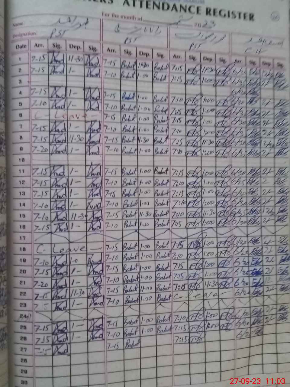 | 36**** | Gh**** Ab**** Su**** | 3 | 1 | 0 | 0 | 0 | 0 | 0 | 0 | 0 | 0 | 0 | Exam Duty |