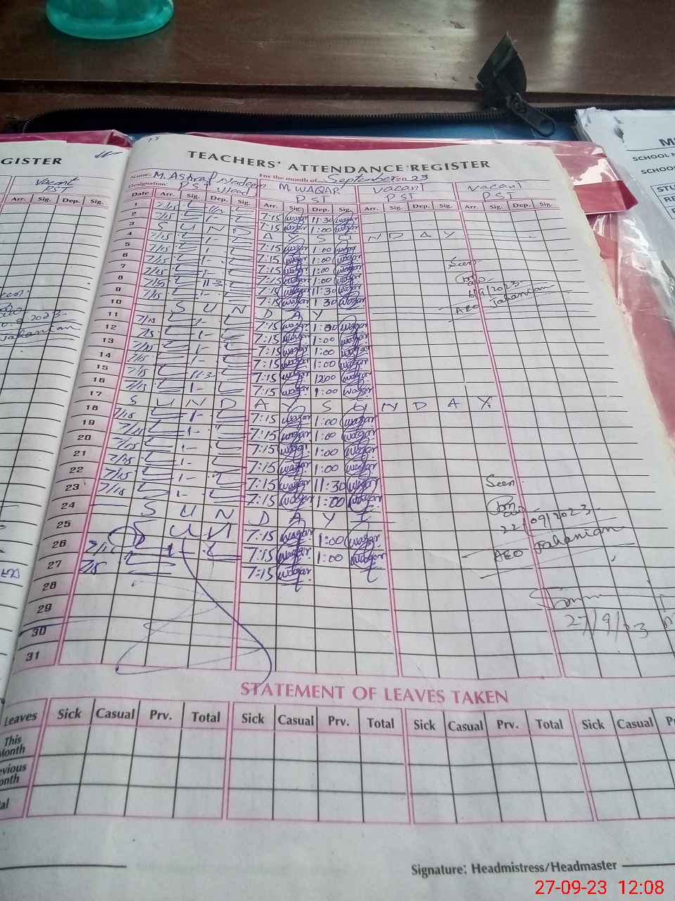 | Name: M.AS**** Designation: (School Headmaster's/Headmistress's) PST Phone/Cell Number: 03**** |