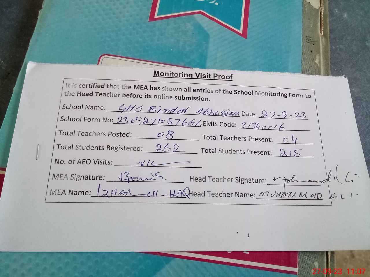 | EMIS Code: 31340016 | Name of School: GHS BINDORE ABBASIAN | |||