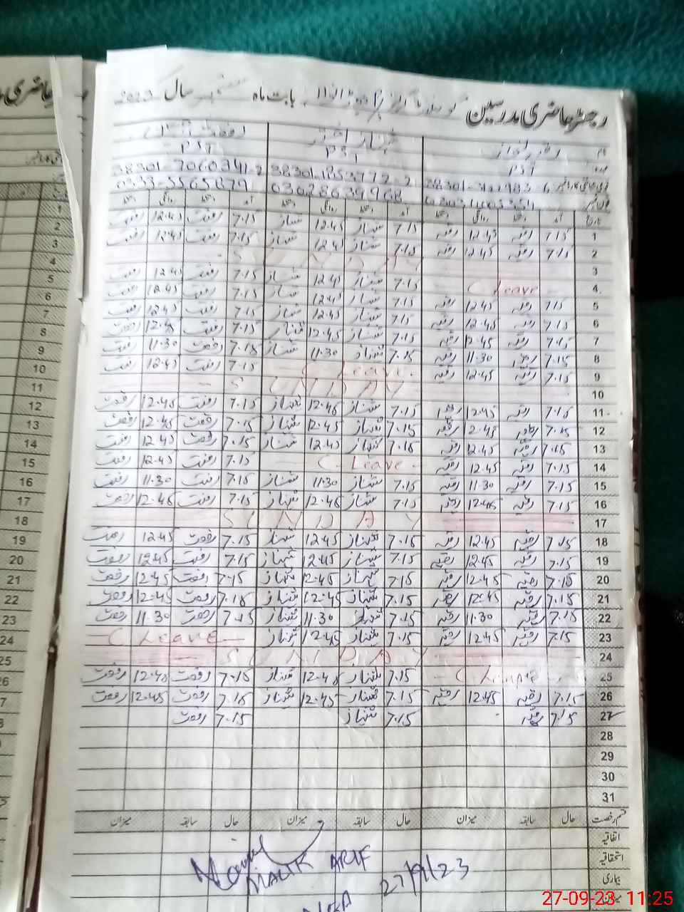 | CNIC | Full Name | Designation | R/C | Absence During Last Calender Month |
