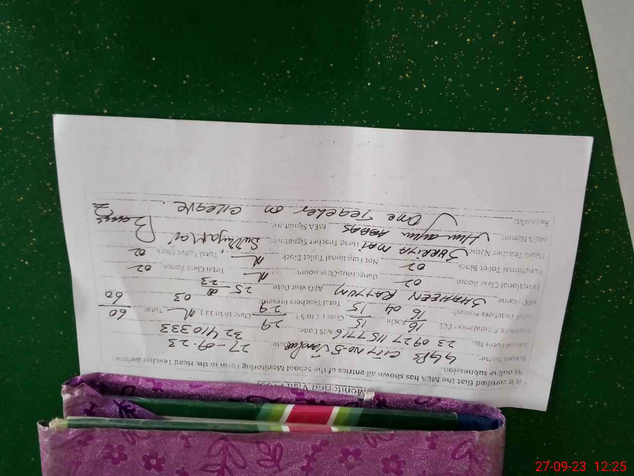 | Remarks (Use Separate Page if Required): One teacher on casual leave overall cleaness good | |||||