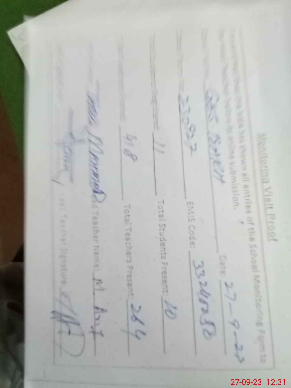 | Name: MU**** AA**** HA**** GI**** Designation: (School Headmaster's/Headmistress's) EST Phone/Cell Number: 03**** |