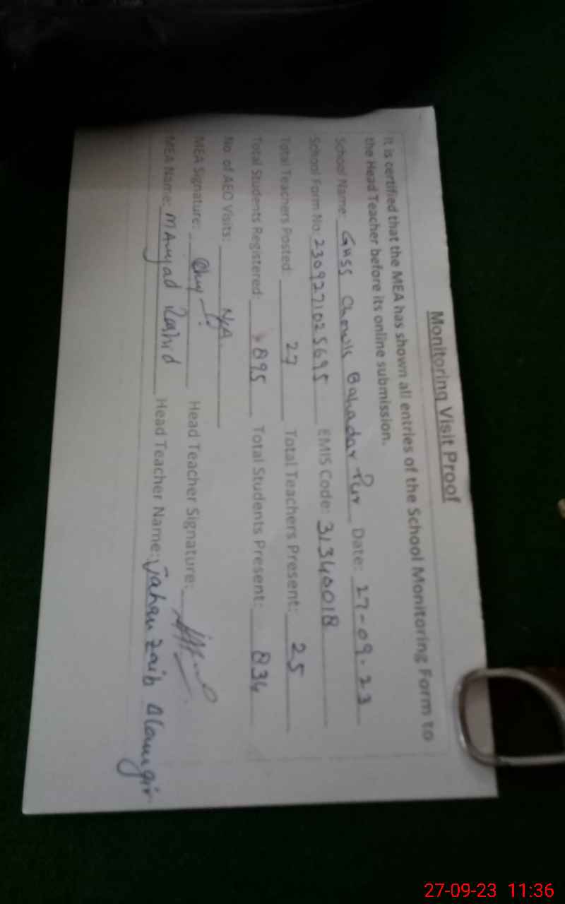 | EMIS Code: 31340018 | Name of School: GHSS CHOK BAHADAR PUR | |||