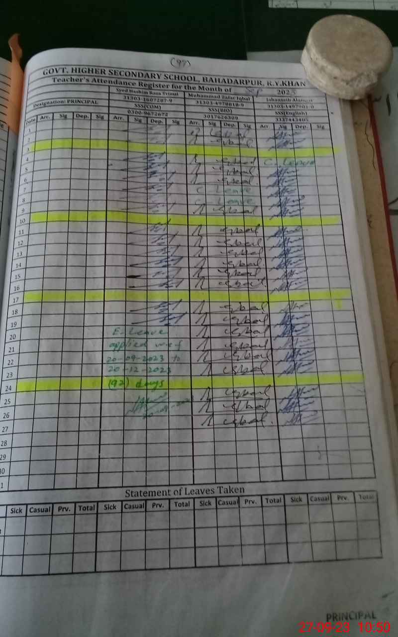 | Name: Sh**** Sa**** Ch Designation: (School Headmaster's/Headmistress's) Principal Phone/Cell Number: 03**** |