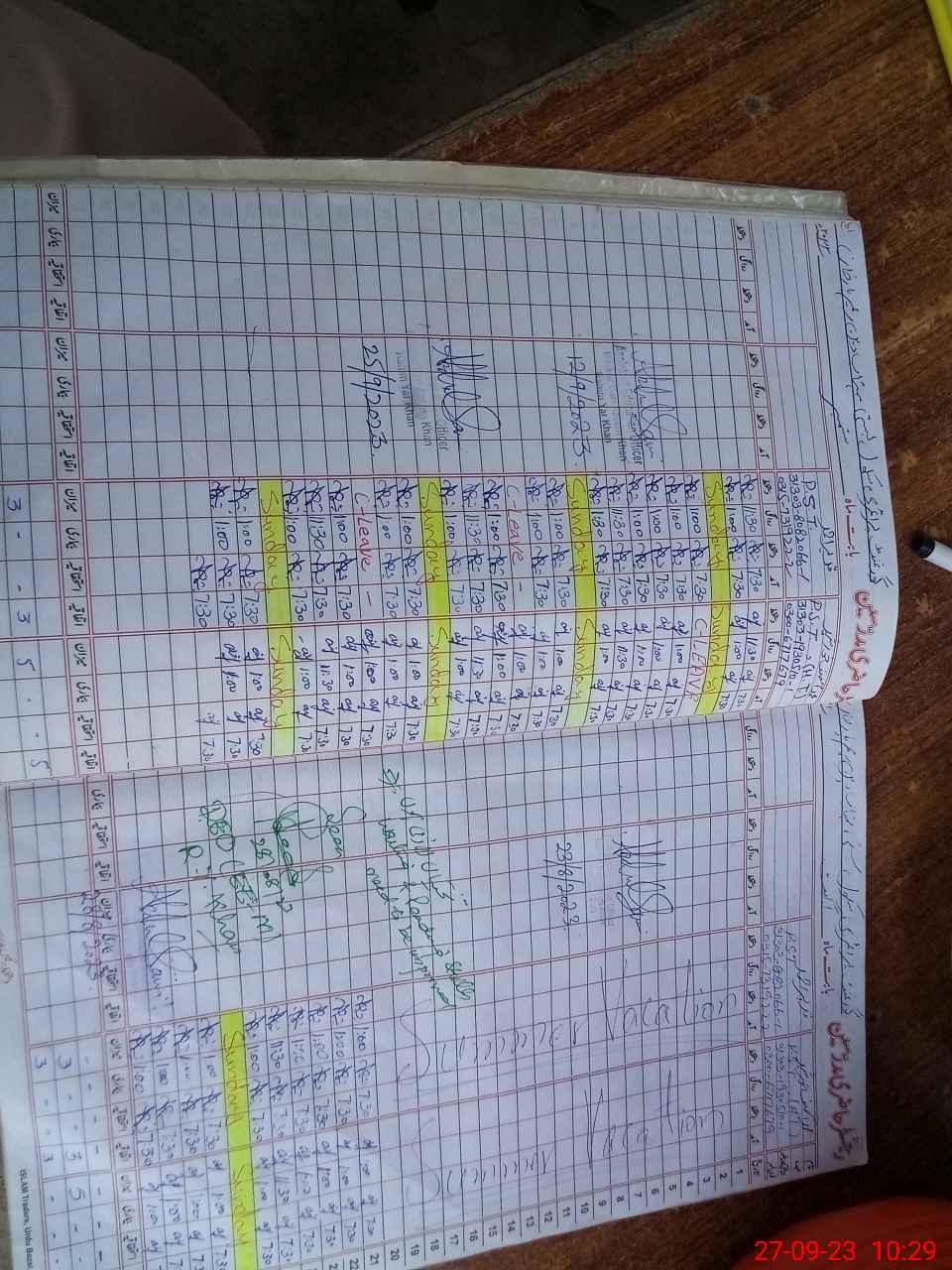 | CNIC | Full Name | Designation | R/C | Absence During Last Calender Month |