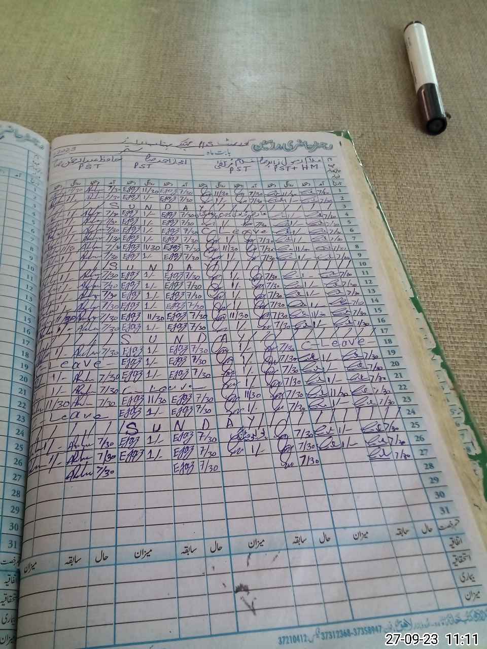 | CNIC | Full Name | Designation | R/C | Absence During Last Calender Month |