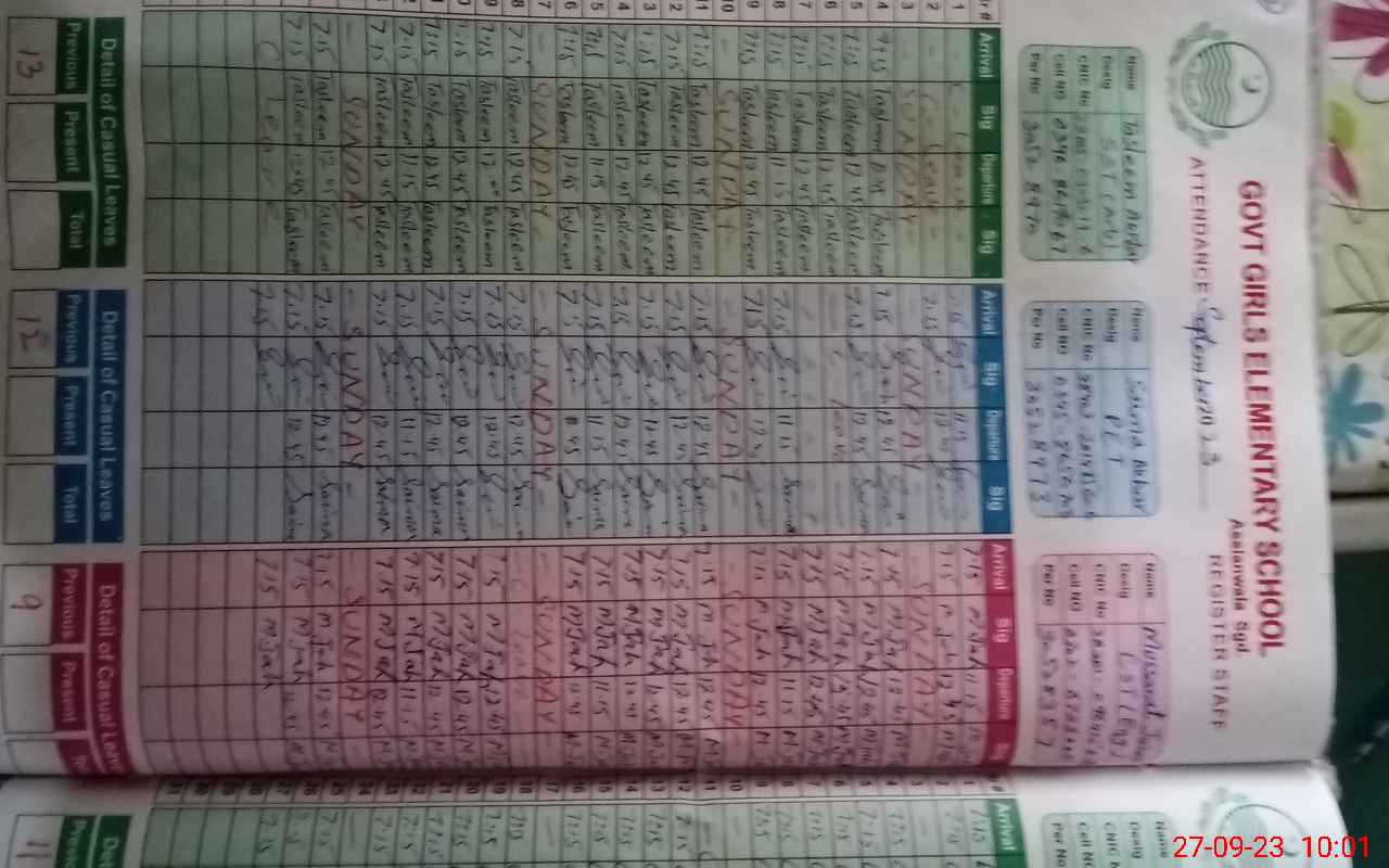 | Name: Ta**** Ak**** Designation: (School Headmaster's/Headmistress's) SST Arts Phone/Cell Number: 03**** |