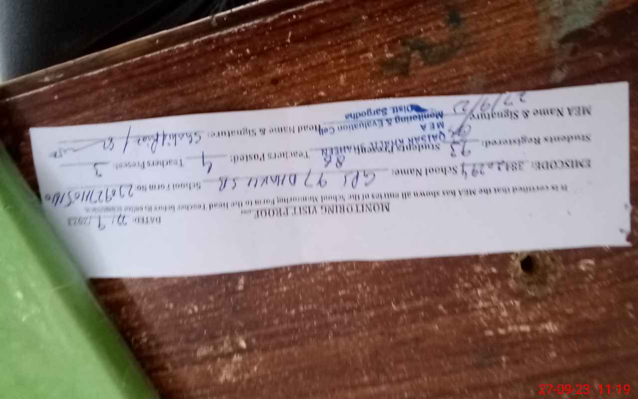 | EMIS Code: 38420294 | Name of School: GPS CHAK NO.97 SB (DAKHLI COLONY) | |||