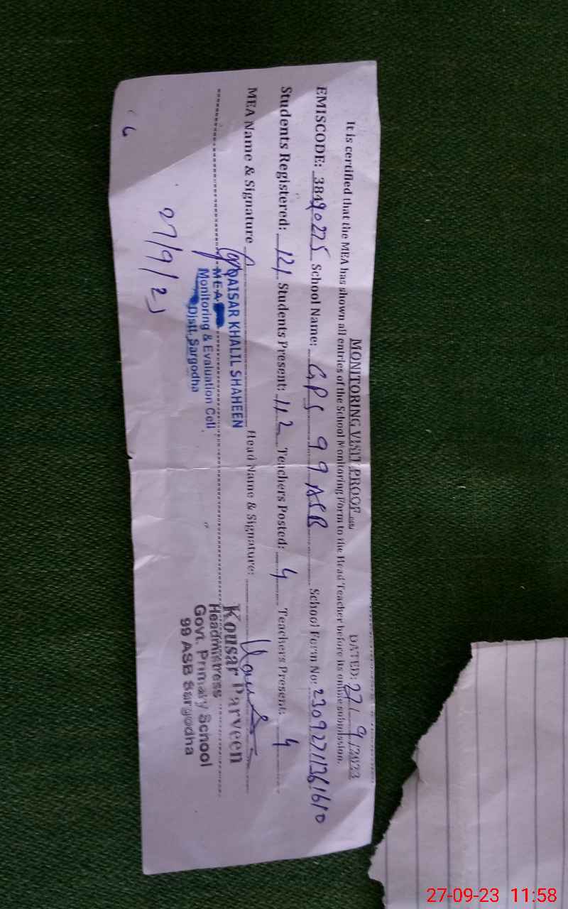 | EMIS Code: 38420275 | Name of School: GPS CHAK NO.99 A-SB | |||