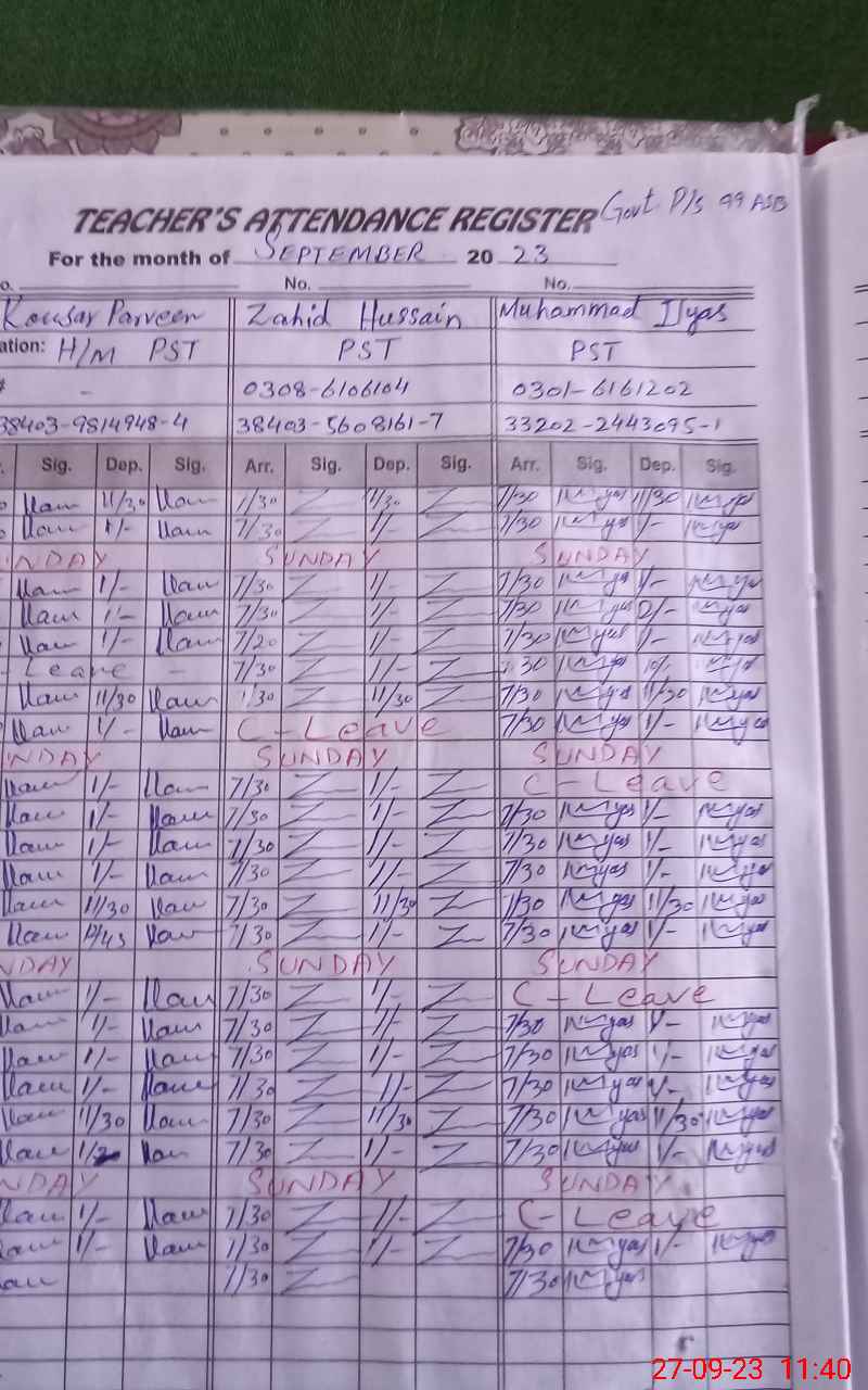 | Name: KA**** PE**** Designation: (School Headmaster's/Headmistress's) PTC/JV Phone/Cell Number: 03**** |