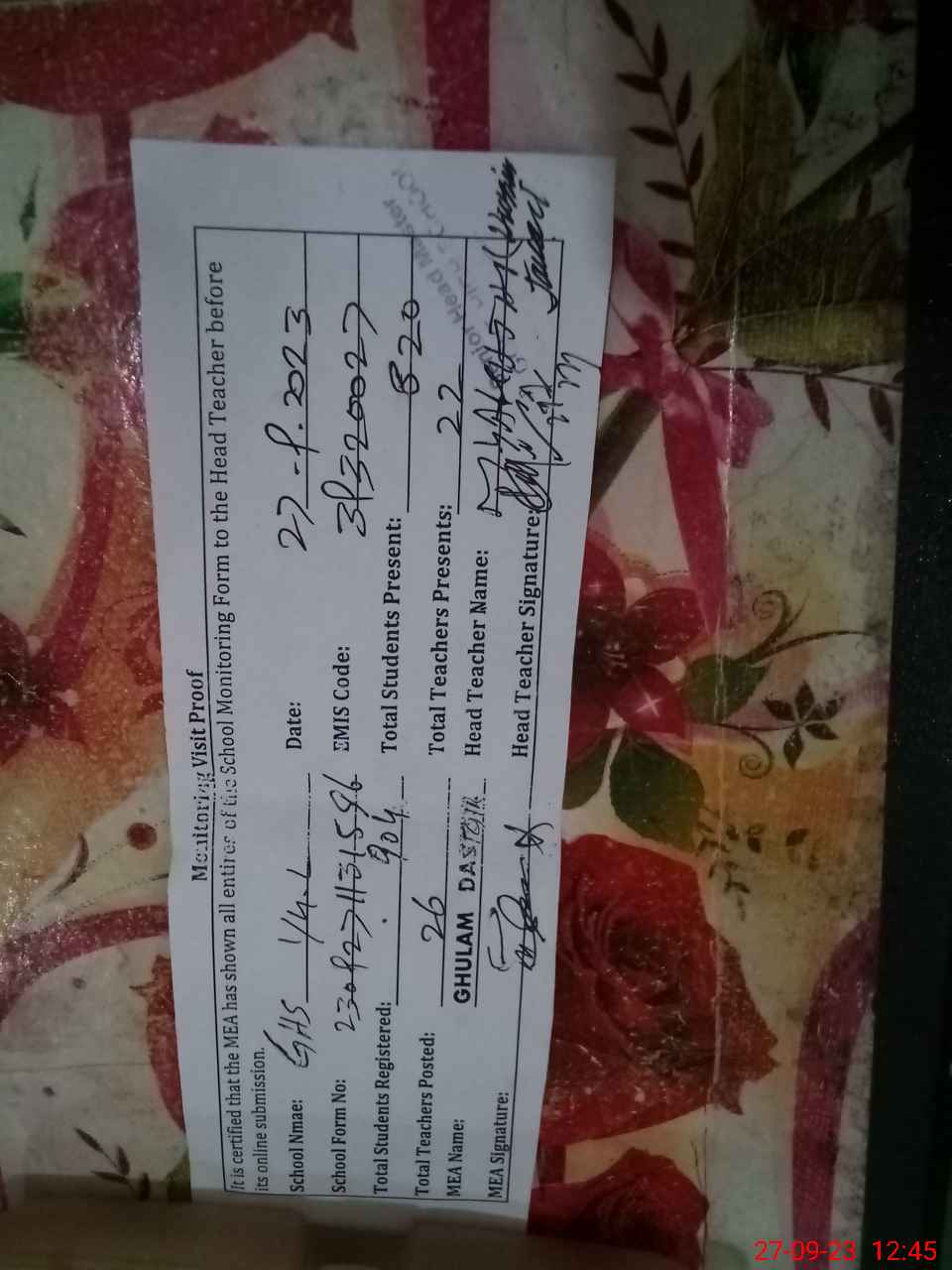 | EMIS Code: 39320027 | Name of School: GHS CHAK NO. 1/4-L | |||