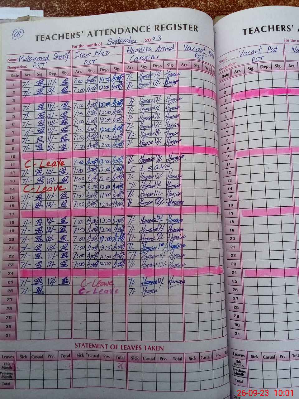 | Leave | Duty | Absent | Maternity | Medical | Ex- Pak |