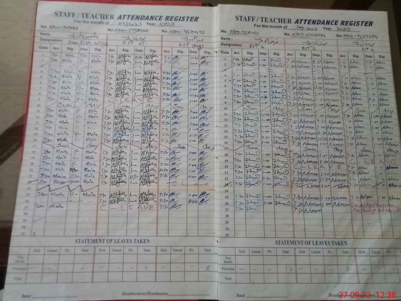| Name: Mo**** Ak**** Designation: (School Headmaster's/Headmistress's) SST CS Phone/Cell Number: 03**** |