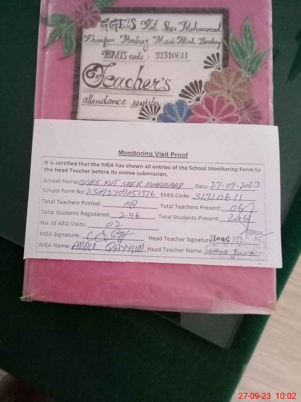 | EMIS Code: 31310611 | Name of School: GGES KOT SHER MOHAMMAD | |||