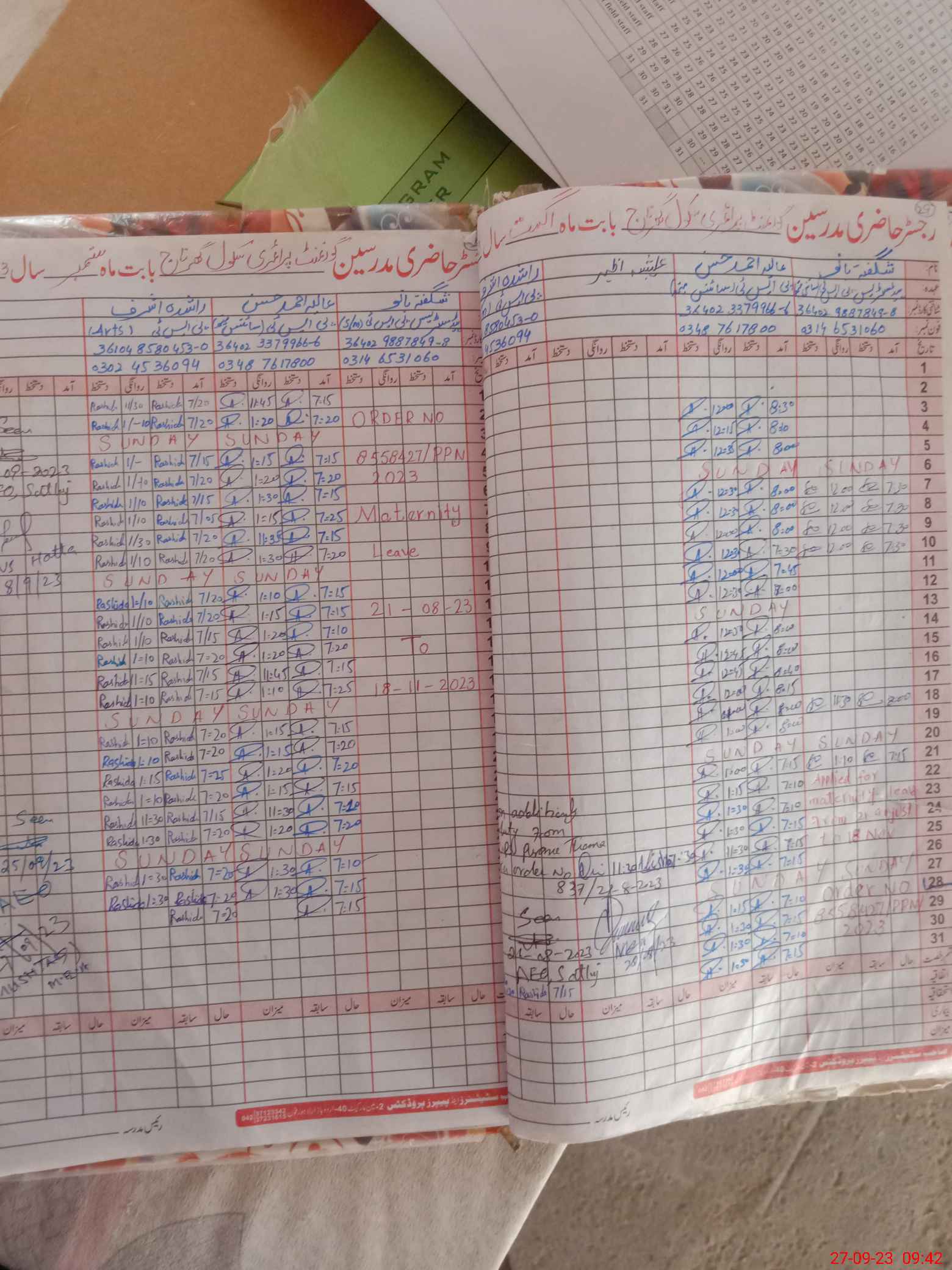 | Name: SH**** BA**** Designation: (School Headmaster's/Headmistress's) PST Phone/Cell Number: 03**** |