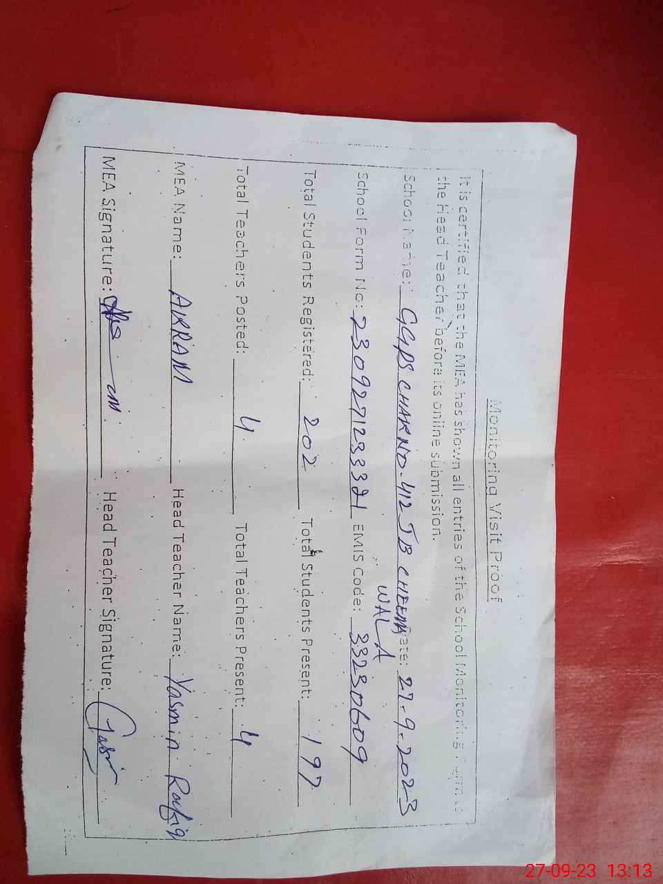 | EMIS Code: 33230609 | Name of School: GGPS CHAK NO 412 JB CHEEMIAN WALA | |||