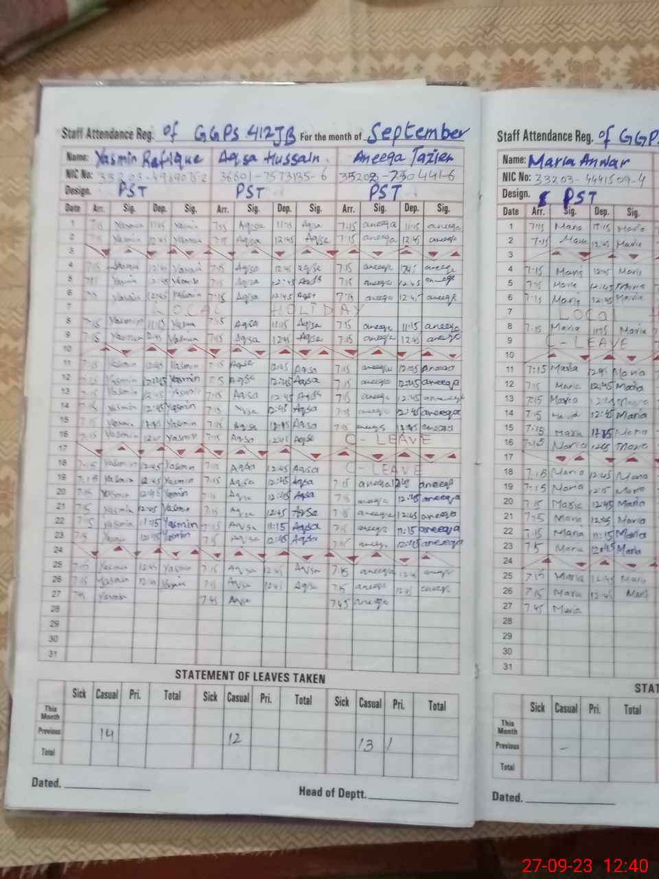 | Leave | Duty | Absent | Maternity | Medical | Ex- Pak |