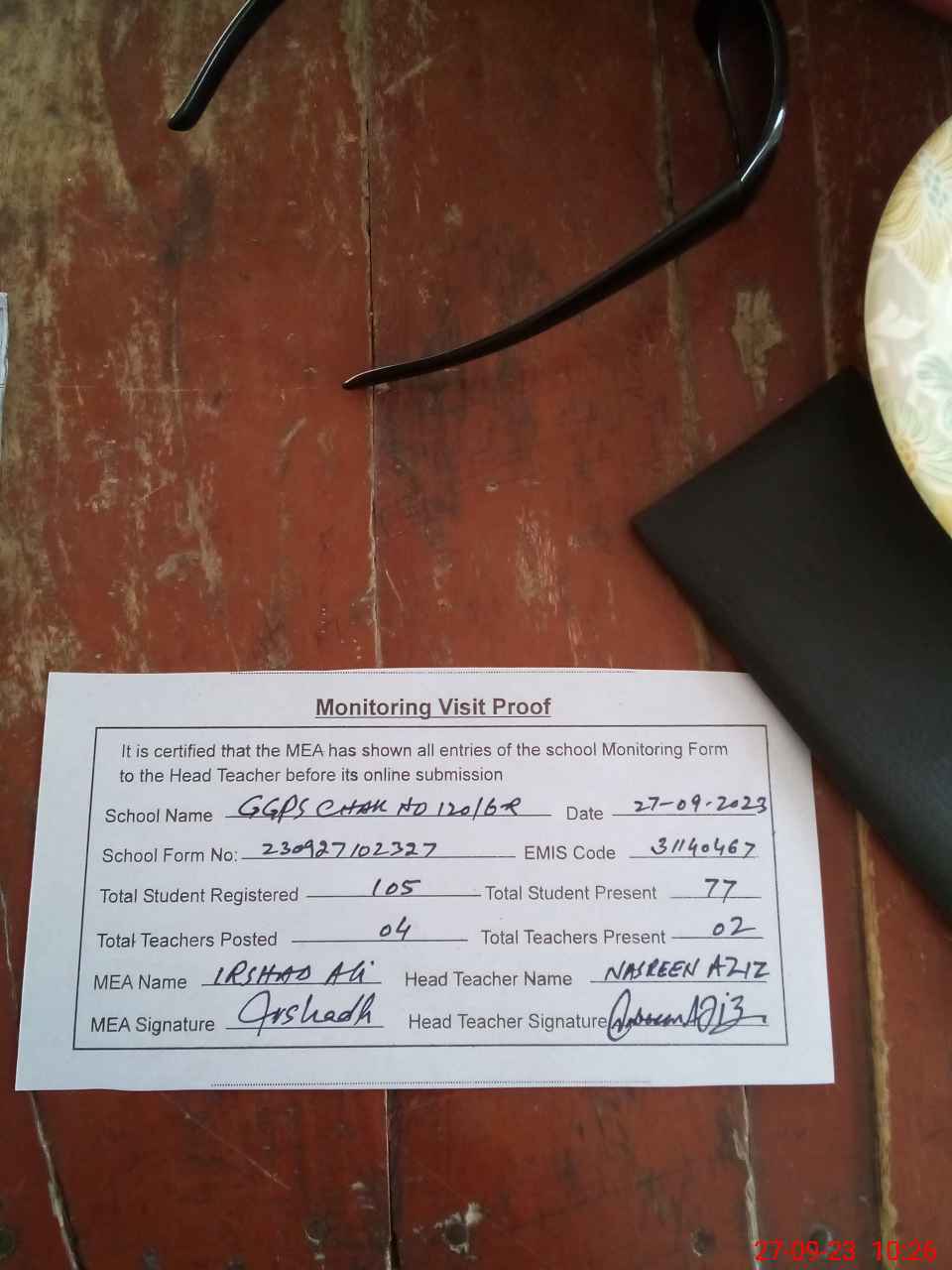 | EMIS Code: 31140467 | Name of School: GGPS CHAK NO 120/6-R B | |||