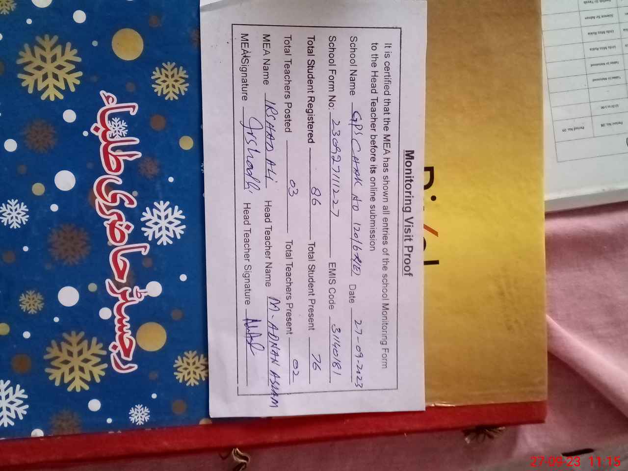 | EMIS Code: 31140181 | Name of School: GPS CHAK NO 120/6-R (E) | |||