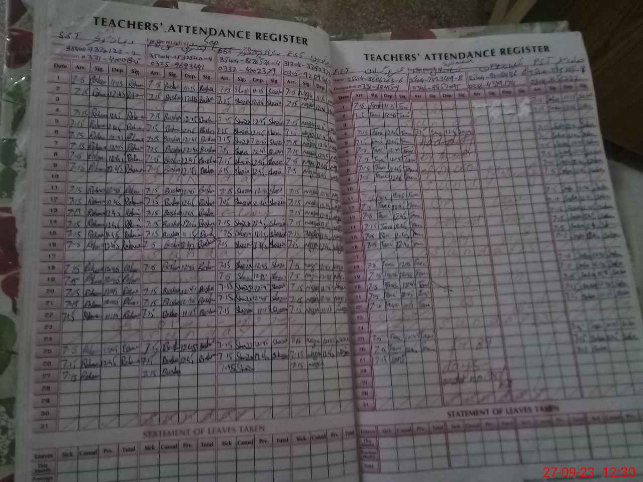 | Name: Re**** Ko**** Designation: (School Headmaster's/Headmistress's) SST General Phone/Cell Number: 03**** |