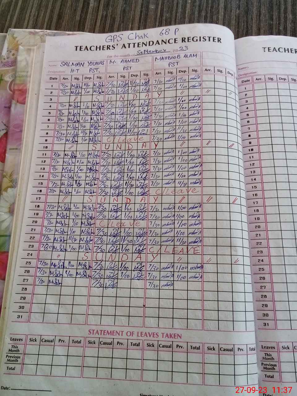 | Name: Sa**** Yo**** Designation: (School Headmaster's/Headmistress's) PST Phone/Cell Number: 03**** |