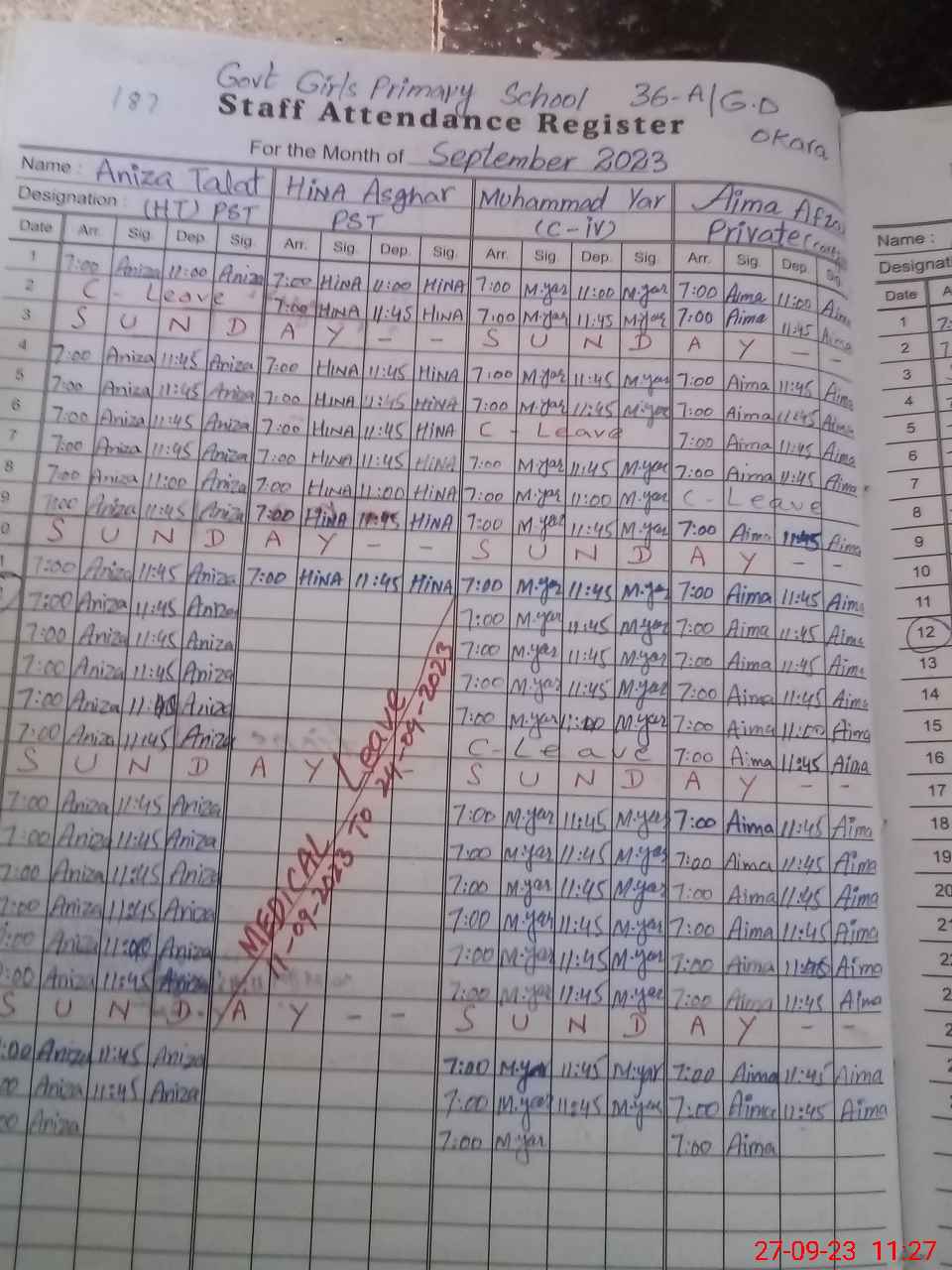 | Leave | Duty | Absent | Maternity | Medical | Ex- Pak |