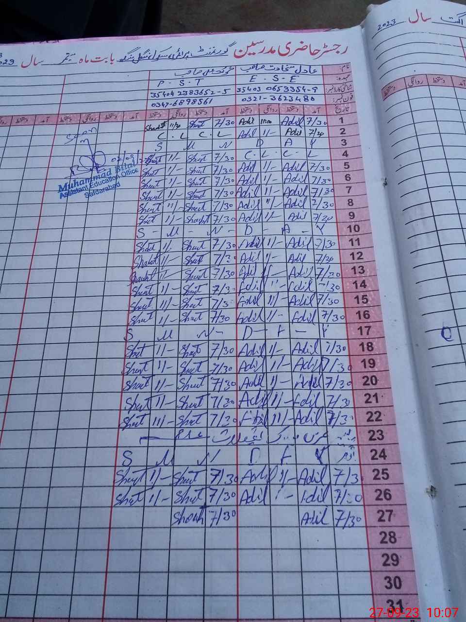| Name: AD**** SA**** Designation: (School Headmaster's/Headmistress's) ESE SCI MATH Phone/Cell Number: 03**** |
