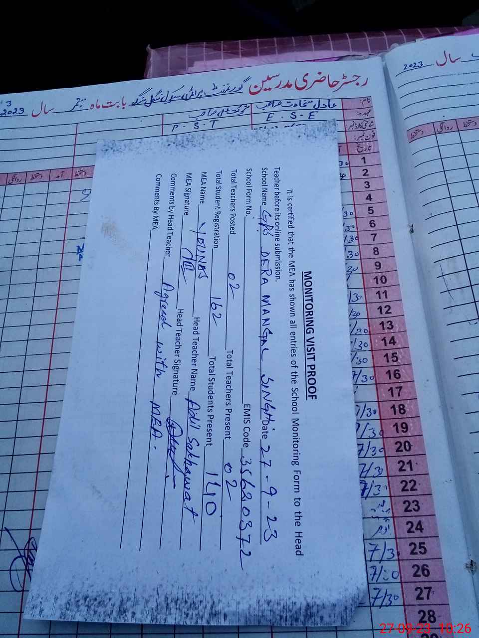 | EMIS Code: 35620372 | Name of School: GPS DERA MANGAL SINGH | |||
