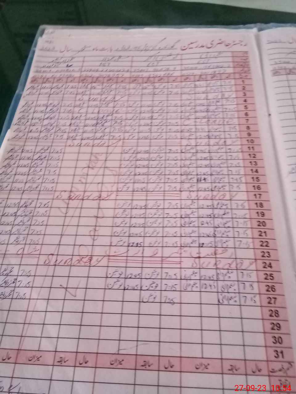 | No. of Students Present - Male | 0 | 0 | 31 | 9 | 4 | 2 | 3 | 7 | 0 | 0 | 0 | 56 | ||||